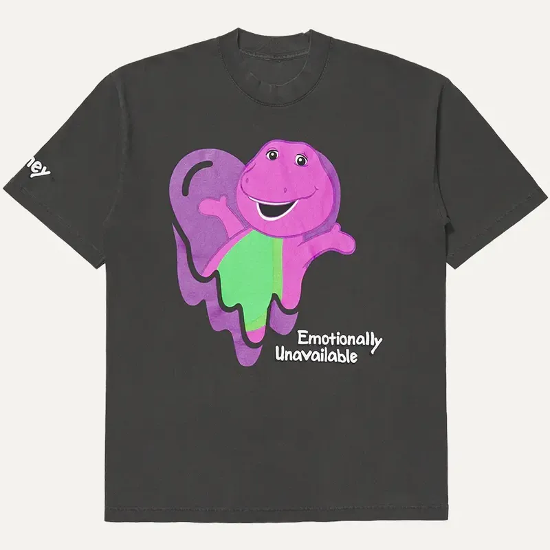Introducing our exclusive Black ComplexCon x Emotionally Unavailable x Barney Tee—a standout piece that fuses nostalgic vibes with contemporary streetwear flair. This limited-edition tee features a bold, oversized Barney graphic with Emotionally Unavailable’s signature heart motif, making it a collector’s dream. Made from premium cotton for ultimate comfort. Whether hitting the streets or lounging at home, this design effortlessly elevates your style.