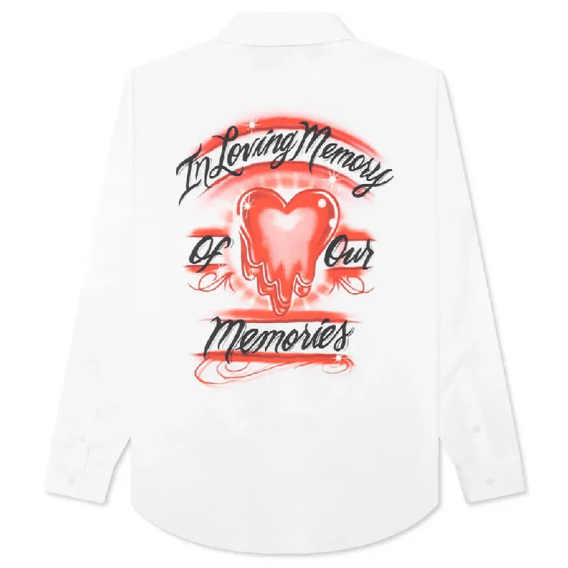 White Emotionally Unavailable Airbrush Button-Up Shirt